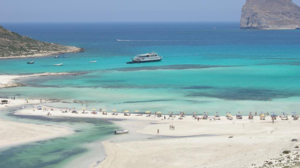 A short 20-minute cruise leads to Balos Lagoon, one of the most famous beaches in the world. Shallow emerald waters, white sand with pink hues from crushed shells and an exotic lagoon setting between the Gramvousa Peninsula and Cape Tigani create a truly unforgettable landscape.
