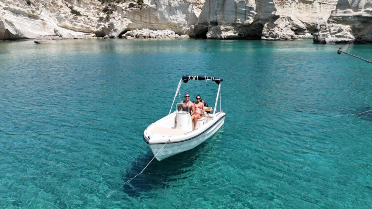 Ζήστε την εμπειρία του Αιγαίου και γίνετε ο δικός σας καπετάνιος με αυτή την μοναδική εμπειρία ενοικίασης σκάφους στην Μήλο. Με το σκάφος Fun Boat 490 απολαύστε μια μισής ή ολόκληρης ημέρας περιπέτεια κατά μήκος της εκπληκτικής νότιας ακτογραμμής του νησιού. Είτε θέλετε να εξερευνήσετε τα κρυστάλλινα νερά, να χαλαρώσετε σε απομονωμένες παραλίες ή να θαυμάσετε την ομορφιά του νησιού από τη θάλασσα, αυτή η εκδρομή σας επιτρέπει να ζήσετε τη Μήλο με τον δικό σας τρόπο.