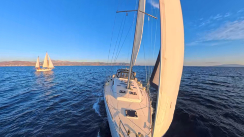 Διασχίστε ξανά το Στενό Πάρου-Νάξου καθώς ο ήλιος αρχίζει να δύει πάνω από την Πάρο, ολοκληρώνοντας μια μοναδική ημέρα ιστιοπλοΐας, κολύμβησης, σνόρκελινγκ και αξέχαστων στιγμών στο Αιγαίο.