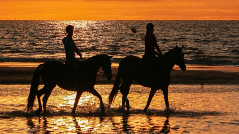 Καθώς ο ήλιος δύει, θα διασχίσετε μαγευτικά τοπία με τη συνοδεία ενός έμπειρου αναβάτη, πριν φτάσετε στο φωτισμένο με κεριά καταφύγιο που σας περιμένει πάνω στην άμμο. Πριν χαλαρώσετε, απολαύστε μια ήρεμη διαδρομή κατά μήκος της ακτής, αφήνοντας τα ρυθμικά κύματα και τα χρυσά χρώματα του ηλιοβασιλέματος να δημιουργήσουν την τέλεια ατμόσφαιρα για μια αξέχαστη ρομαντική εμπειρία.