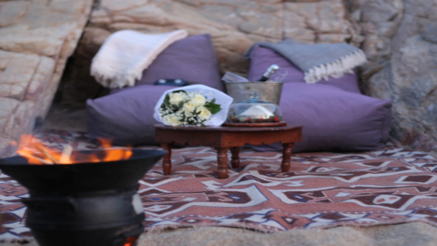 Μοιραστείτε ένα μαγικό βράδυ με τον/τη σύντροφό σας σε μια ιδιωτική βόλτα με άλογο προς τις απόμερες ακτές και την παραλία Φωκός, όπου θα σας περιμένει ένα όμορφα διαμορφωμένο σκηνικό βεδουίνικου στυλ, δίπλα στα ηφαιστειακά βράχια και το Αιγαίο.
