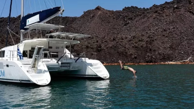 Με φιλική εξυπηρέτηση από το πλήρωμα, άνετη πλεύση και μοναδική θέα στην ακτογραμμή, αυτή η κρουαζιέρα με καταμαράν προσφέρει τον τέλειο συνδυασμό χαλάρωσης, αυθεντικών γεύσεων και φυσικής ομορφιάς, ένας μοναδικός τρόπος να ανακαλύψετε τη Σαντορίνη από τη θάλασσα.