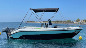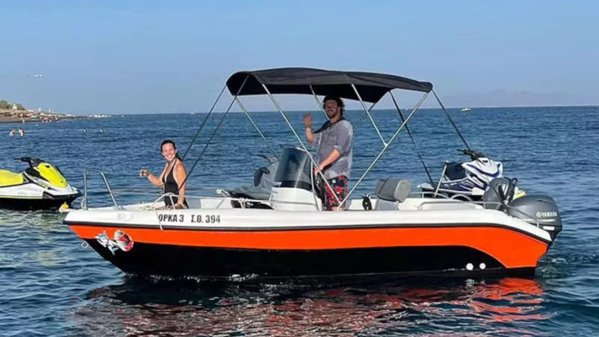 Embark on a remarkable excursion around the beautiful island of Santorini with a license-free motorboat rental.