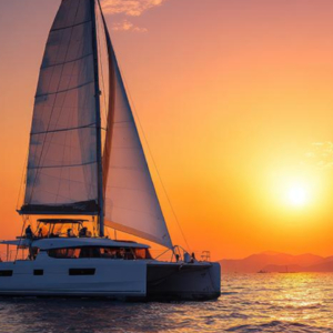 Shared Catamaran Day Cruise in Santorini. Morning or Sunset Sailing Adventure