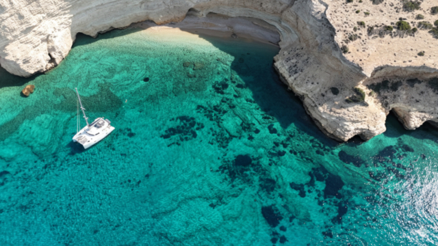 Join a full-day private catamaran cruise to Koufonisi departing from Pyrgaki Beach in South Naxos and explore one of the most impressive island landscapes of the Small Cyclades.