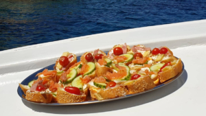 Onboard, enjoy a full-course Greek meal, including seafood specialties, fresh salads and local wines. With only a small group of up to 12 people, the cruise offers a relaxed and intimate atmosphere, perfect for those looking to unwind and experience the best of the Cycladic islands. This private half-day cruise ensures a unique, unforgettable adventure on the Aegean Sea.