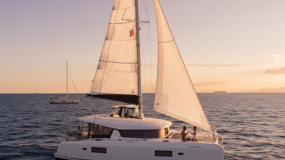 Join a private sunset catamaran cruise from Naxos Town and experience the Aegean Sea during the most atmospheric time of day exclusively with your friends or family.