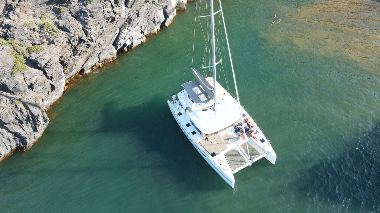 Embark on a luxurious morning or sunset shared catamaran cruise in Santorini. Experience the beauty of Santorini from a luxurious Lagoon 520 or Lagoon 500 catamaran on either a peaceful morning cruise or a captivating sunset sail.