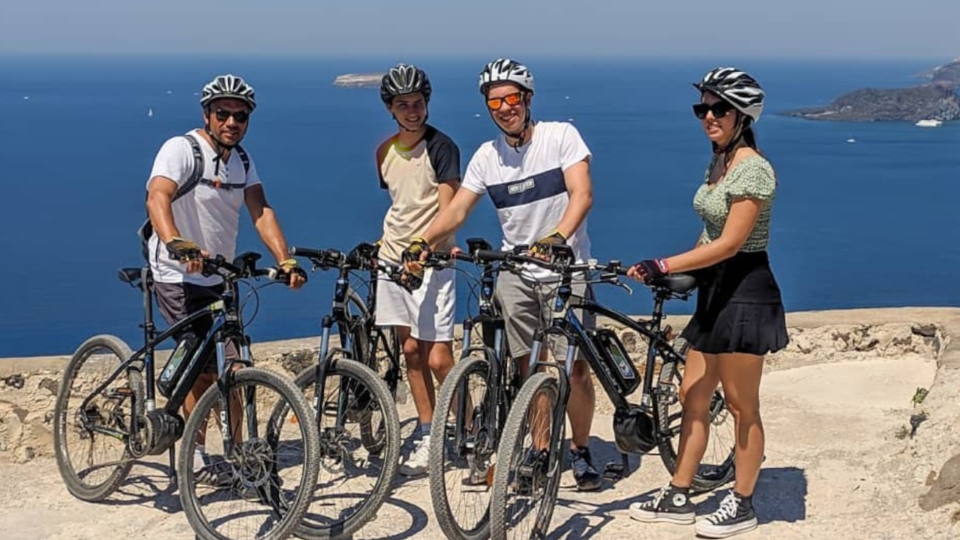 Return along a different route through vineyard-covered hills, passing beneath the iconic windmills of Emporio and making your way back to Perivolos, completing a memorable ride filled with culture, nature and unforgettable views.